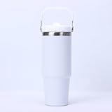 AgeSs 30 oz Stainless Steel Tumbler with Flip Straw & Handle, Insulated Double Walled Water Bottle for Home, Office, Car, Leak Proof, Reusable Cup 2-in-1 Straw & Sip Lid Women Men (white), YP009