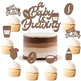JOYMEMO 25 Pieces Coffee Theme Baby Shower Cake Decorations, A Baby Is Brewing Cake Topper with Cupcake Toppers, Glitter Paper Cake Decorations for Baby Shower Party Supplies