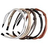Mednkoku Thin Headbands for Women 5 Pcs Cute Knotted Headbands Non Slip Elastic Hair Loop 5 Colors Stylish Leather Head Bands for Women's Hair Accessories,Leather For
